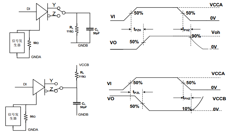 tPLH 接收關閉使能傳播延遲,輸出低電平至高電平時間 50 μs