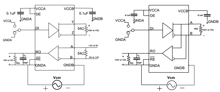 10-8 全雙工(左)和半雙工(右) CMTI 共模瞬變抗擾度測試電路